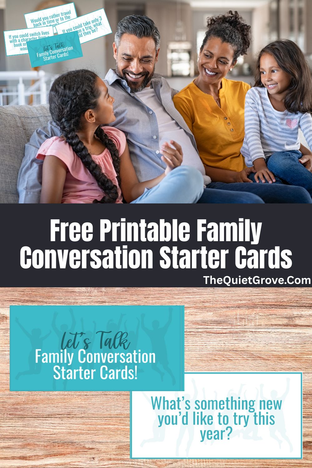 That’s what inspired me to create my latest printable: “Let’s Talk: Family Conversation Starter Cards” — a free set of 50 family-friendly questions designed to get everyone talking!